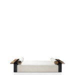 Horn is used in a variety of furniture elements, such as coffee tables, mirror frames, furniture handles, table legs and decorative details on sideboards and consoles. Its combination with fine materials such as lacquered wood, glass and metal makes it ideal for sophisticated settings. In addition, it is often used to create design objects such as trays, sculptures and lamps, which become true art elements in the living room.