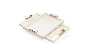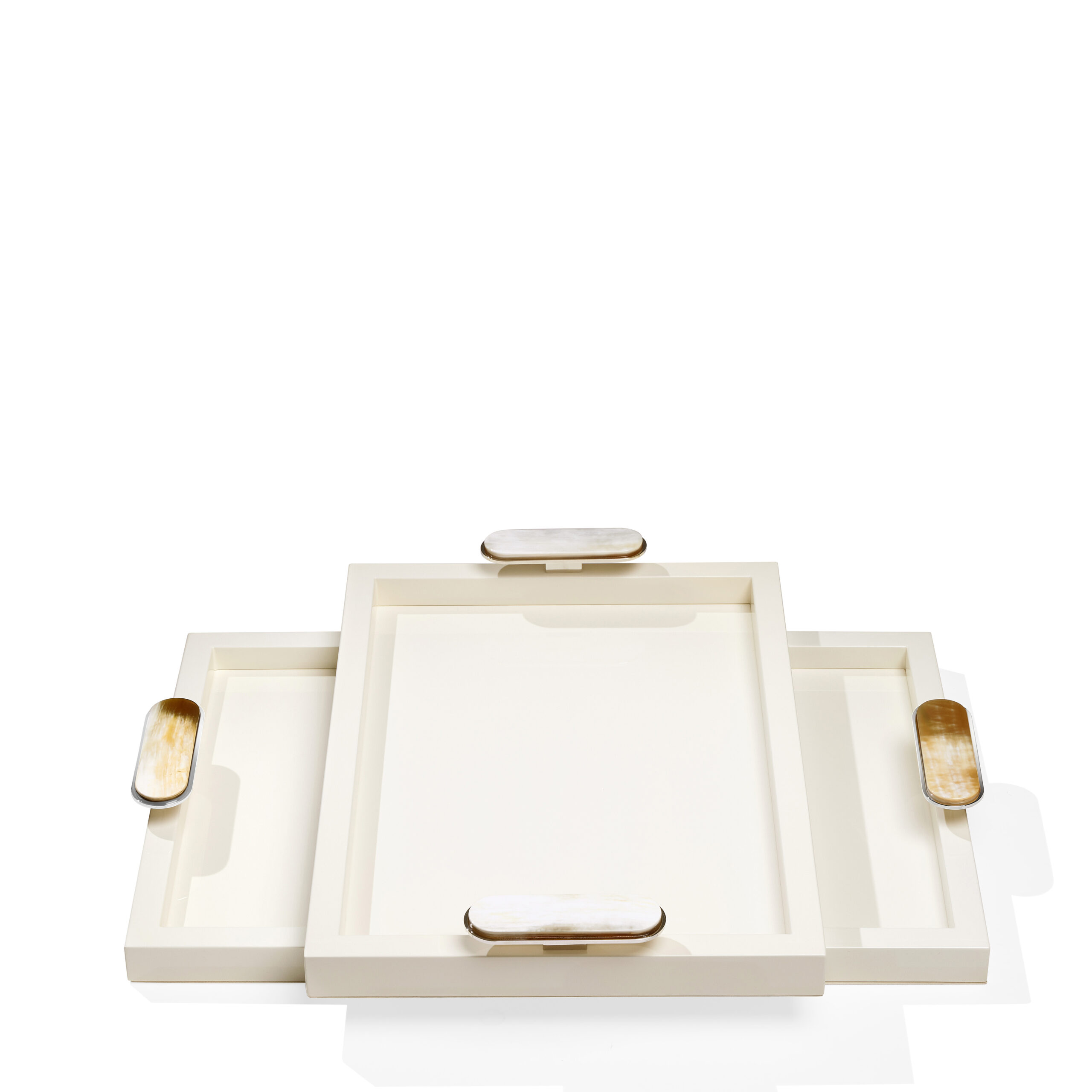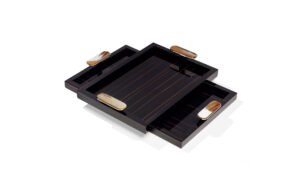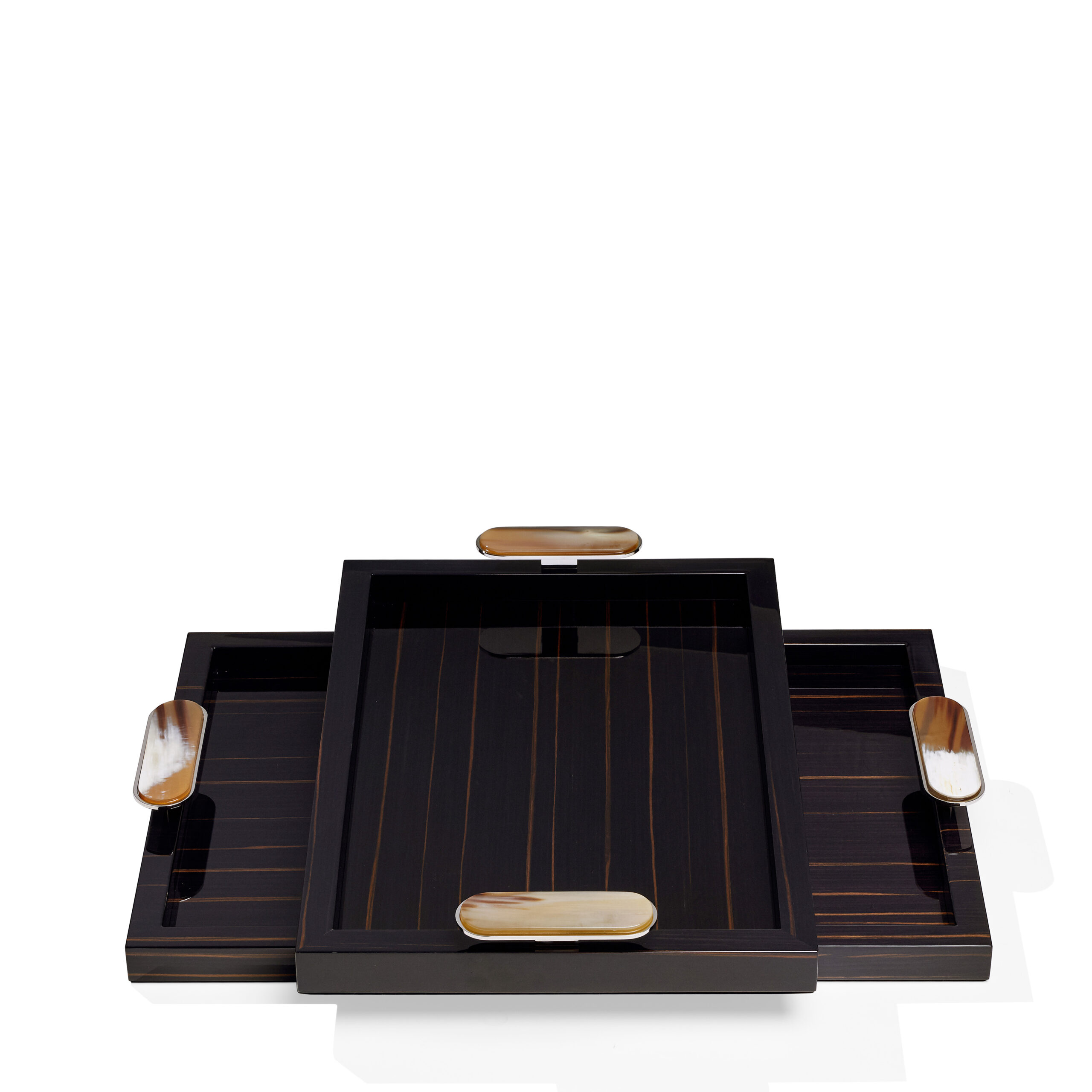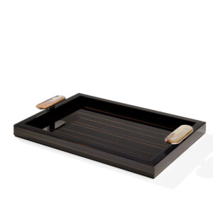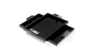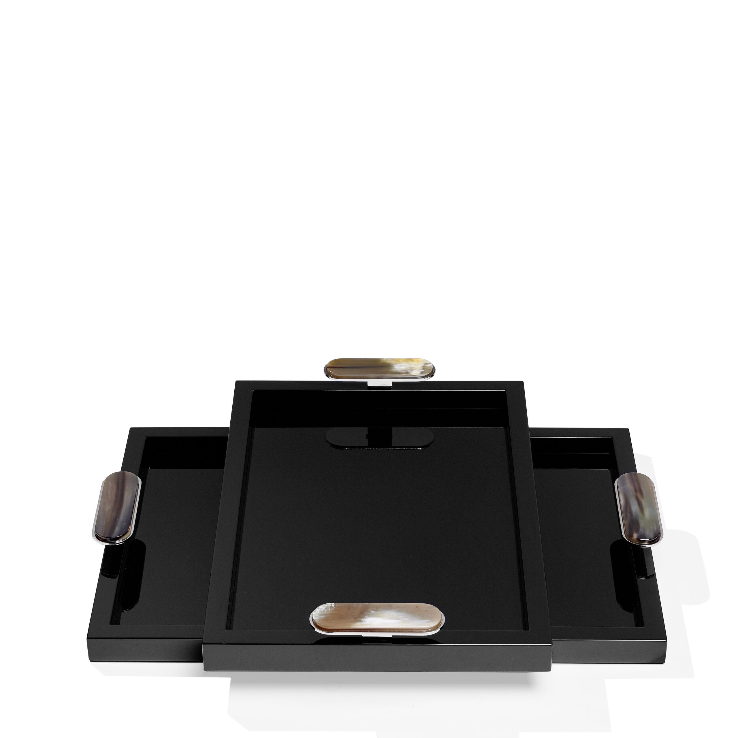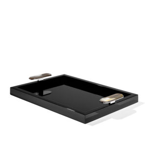 With its timeless elegance, Berro is the perfect tray to enhance your gatherings. Crafted from glossy black lacquered wood, the design is embellished by refined handles in horn and chromed brass. Shaped by skilled artisans, the horn unveils its distinctive nuances, making each tray a unique masterpiece. Featuring generous dimensions, Berro stands as a versatile and stylish accessory, effortlessly adapting to meet your diverse needs with both grace and functionality.