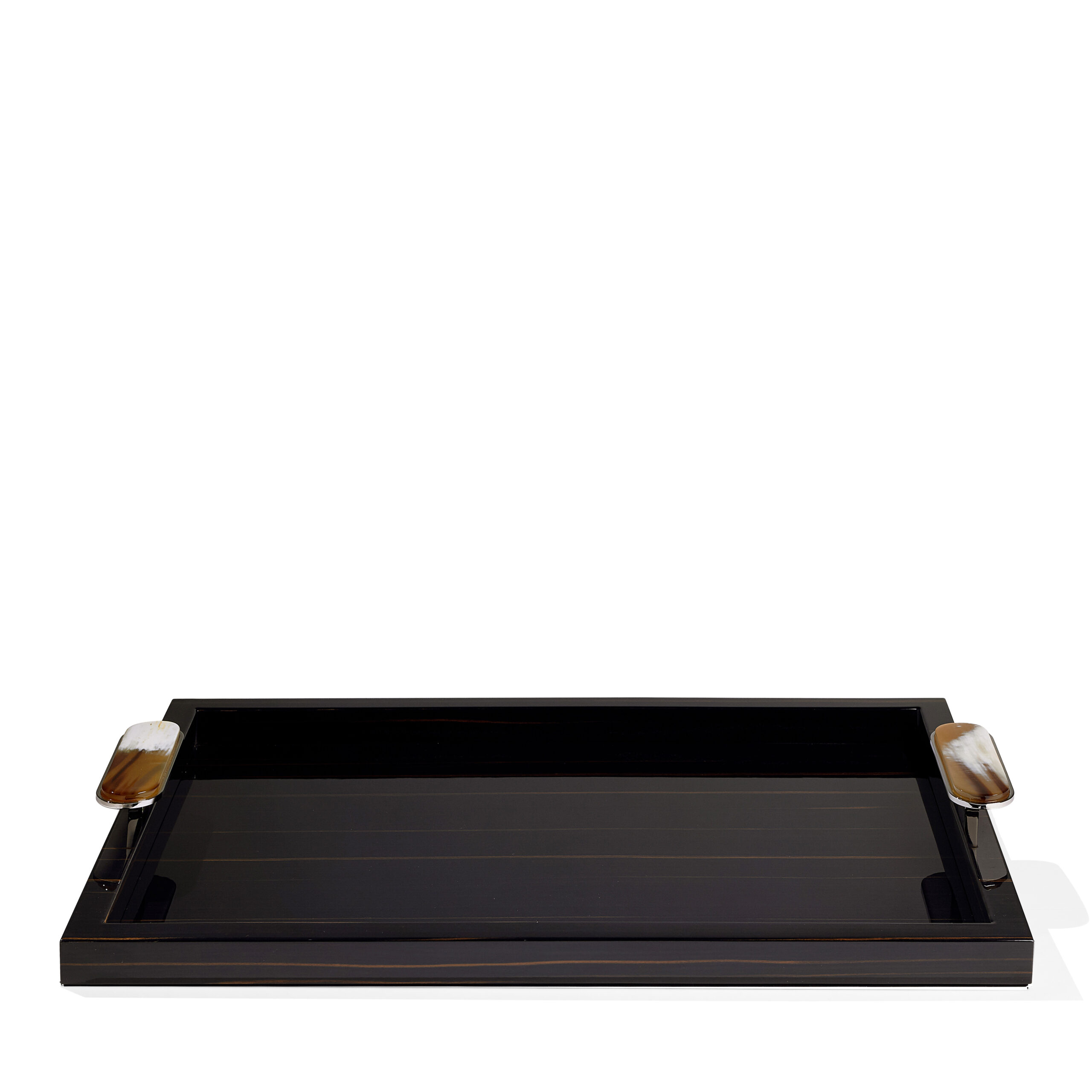 Tray in glossy ebony. Handles in horn and chromed brass.