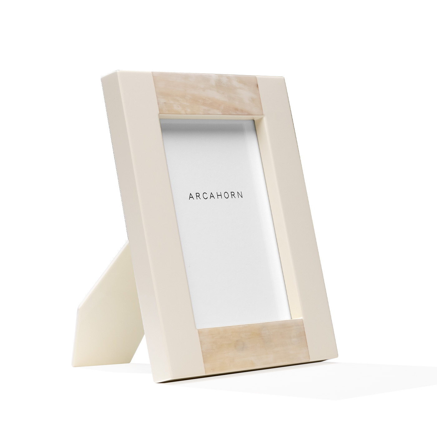 Picture frame in horn and wood with lacquered ivory gloss finish.