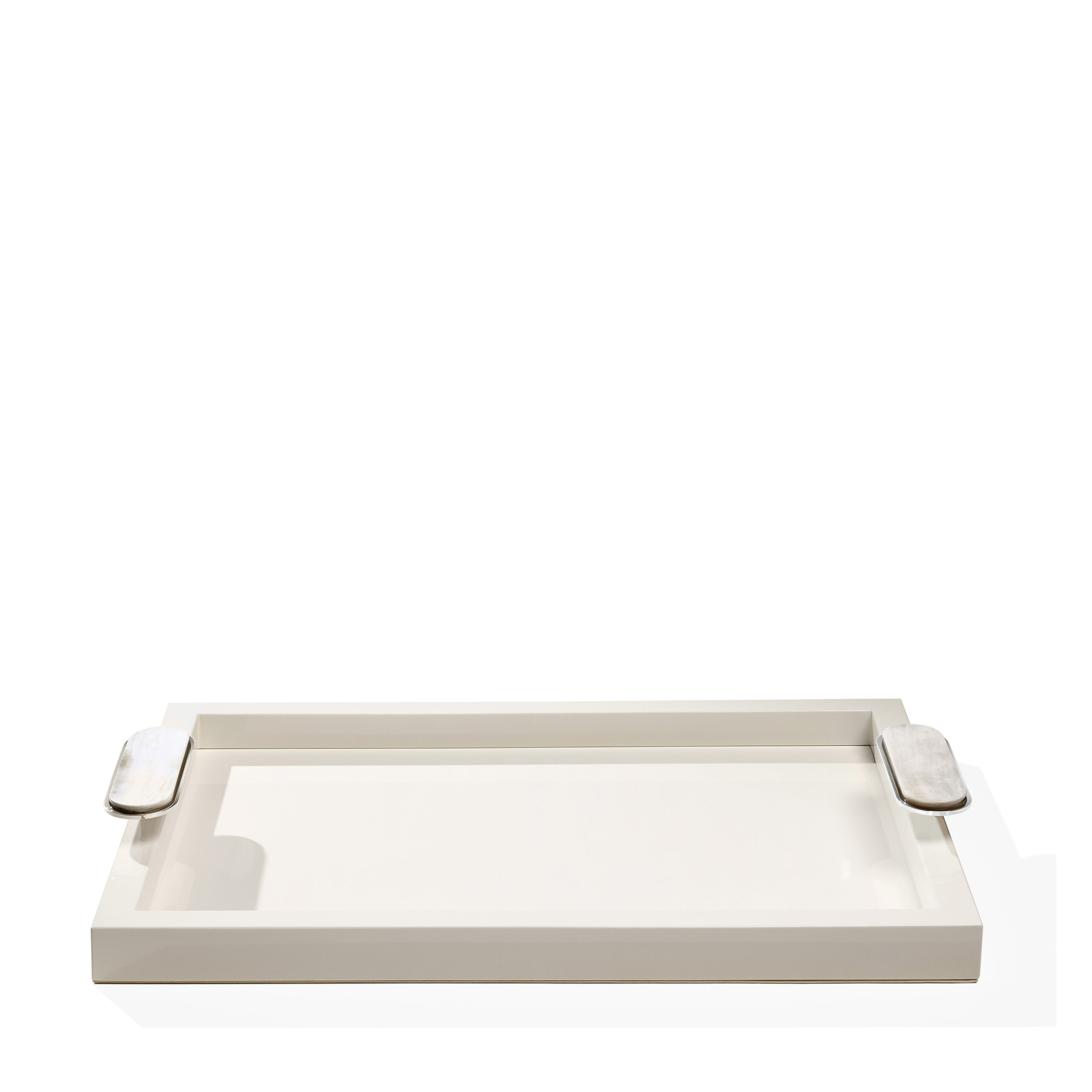 Tray in wood with lacquered ivory gloss finish. Handles in horn and chromed brass.