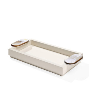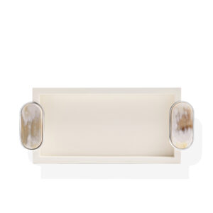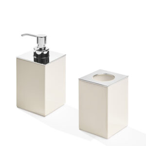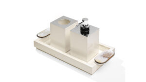 Gli accessori per il bagno svolgono un ruolo cruciale nell’arredamento di questo spazio, contribuendo a renderlo non solo funzionale ma anche esteticamente piacevole. Il set bagno Argentella, completo di portaspazzolini, dispenser e un pratico vassoio, incarna l’equilibrio perfetto tra funzionalità e impiego di materiali pregiati. Realizzato in legno laccato soft ehite lucido e ottone cromato, il design si contraddistingue per i manici in corno e ottone cromato che decorano il vassoio. Le sfumature delicate del corno sono il tratto distintivo di Argentella e gli conferiscono uno stile unico e riconoscibile, in grado di elevare l’ambiente in cui è inserito. È possibile acquistare ogni componente del set anche singolarmente, in base alle necessità progettuali individuali.