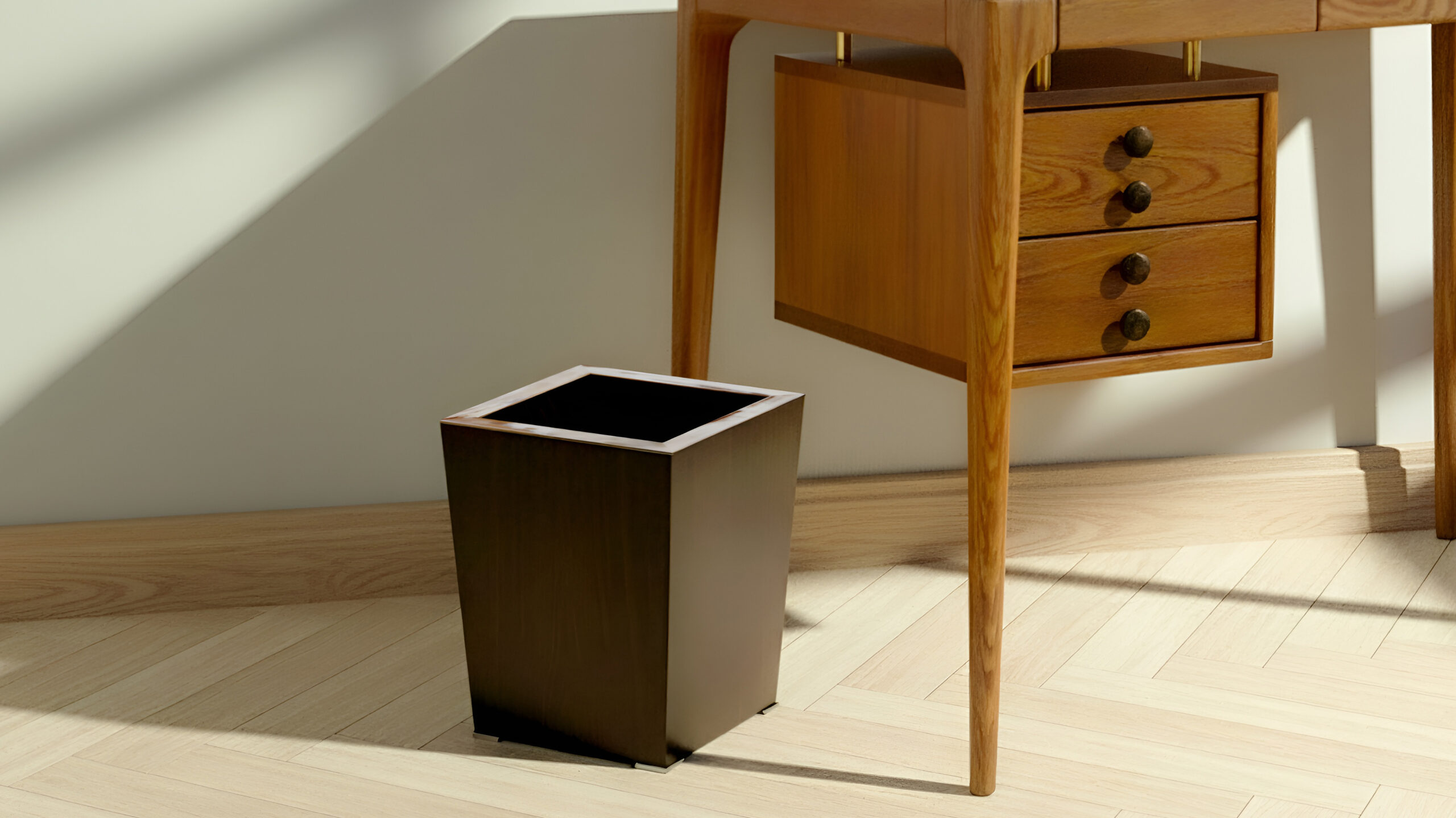 Dona un tocco raffinato all’ambiente domestico o all’ufficio con il cestino gettacarte Fedro. Realizzata in legno, l’elegante struttura a piramide rovesciata è arricchita da un ricercato bordo in corno. Poggiato su quattro piedini in ottone, Fedro è un accessorio lussuoso adatto ad ogni spazio.