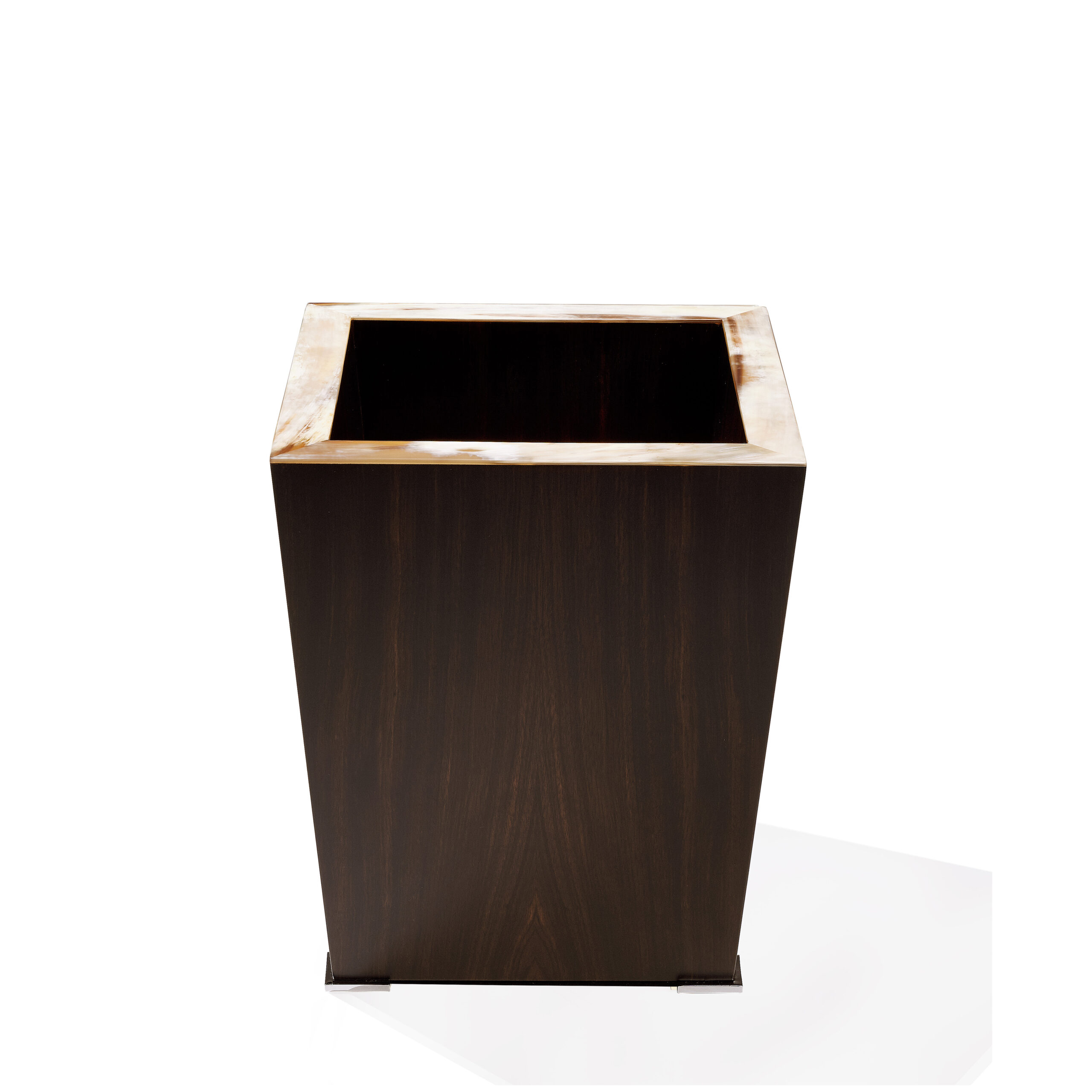 Cestino gettacarte in corno opaco ed ebano Amara opaco. Piedini in ottone cromato.