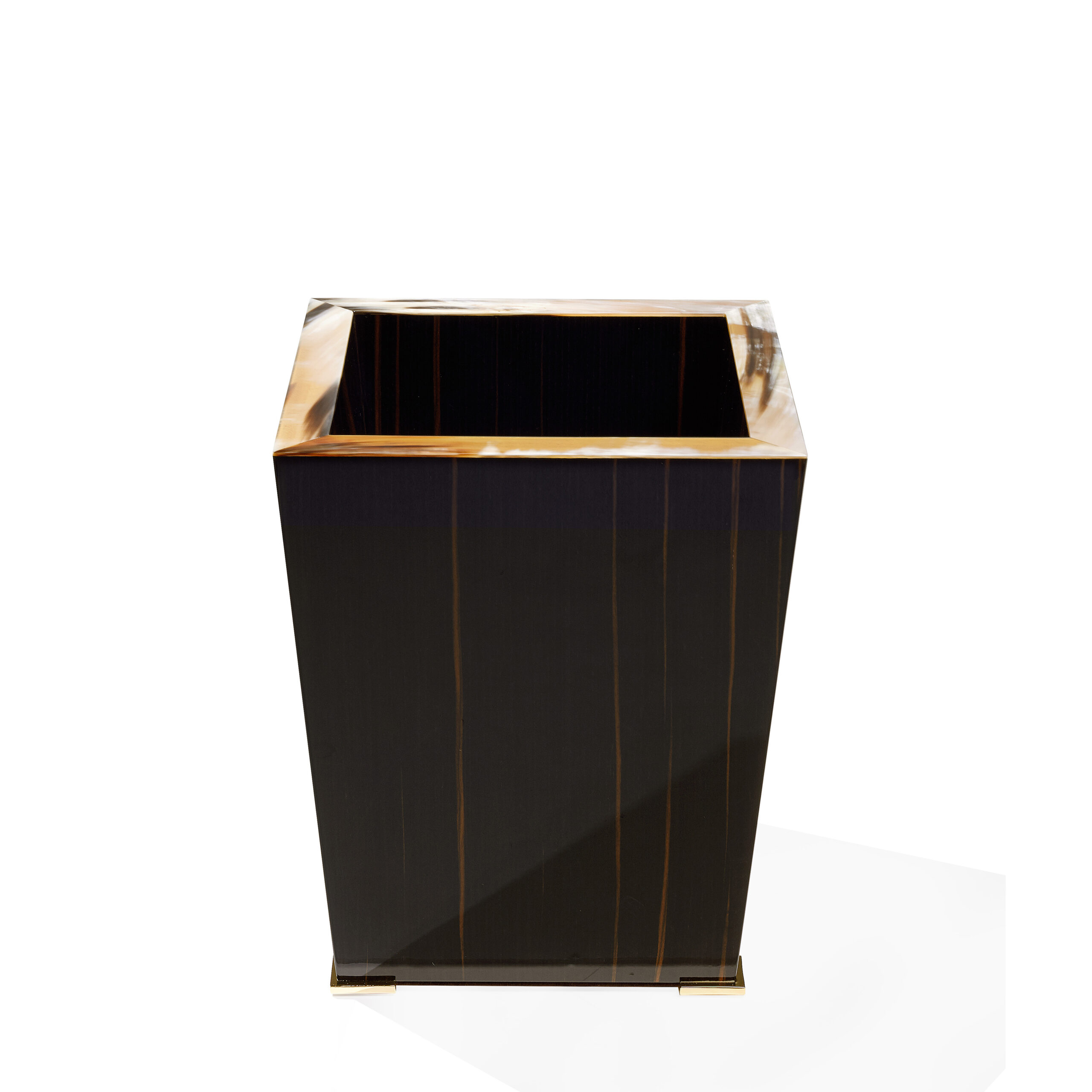 Cestino gettacarte in corno ed ebano glossy. Piedini in ottone placcato oro 24K.