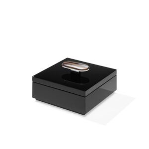 La scatola Priora si contraddistingue per la sua raffinata semplicità e per la cura meticolosa dei dettagli che la rendono l’accessorio perfetto per custodire piccoli effetti personali. Priora è realizzata in legno laccato nero lucido ed il coperchio è impreziosito da un’applicazione in corno e ottone cromato. Le nuances naturali del corno, abbinate alla lucentezza della laccatura e del metallo, donano alla scatola un tocco di sobria eleganza. Disponibile nella versione quadrata e rettangolare, Priora non si limita a svolgere la sua funzione pratica, ma valorizza ogni contesto in cui è collocata, sia esso una residenza privata, un ufficio o uno yacht.
